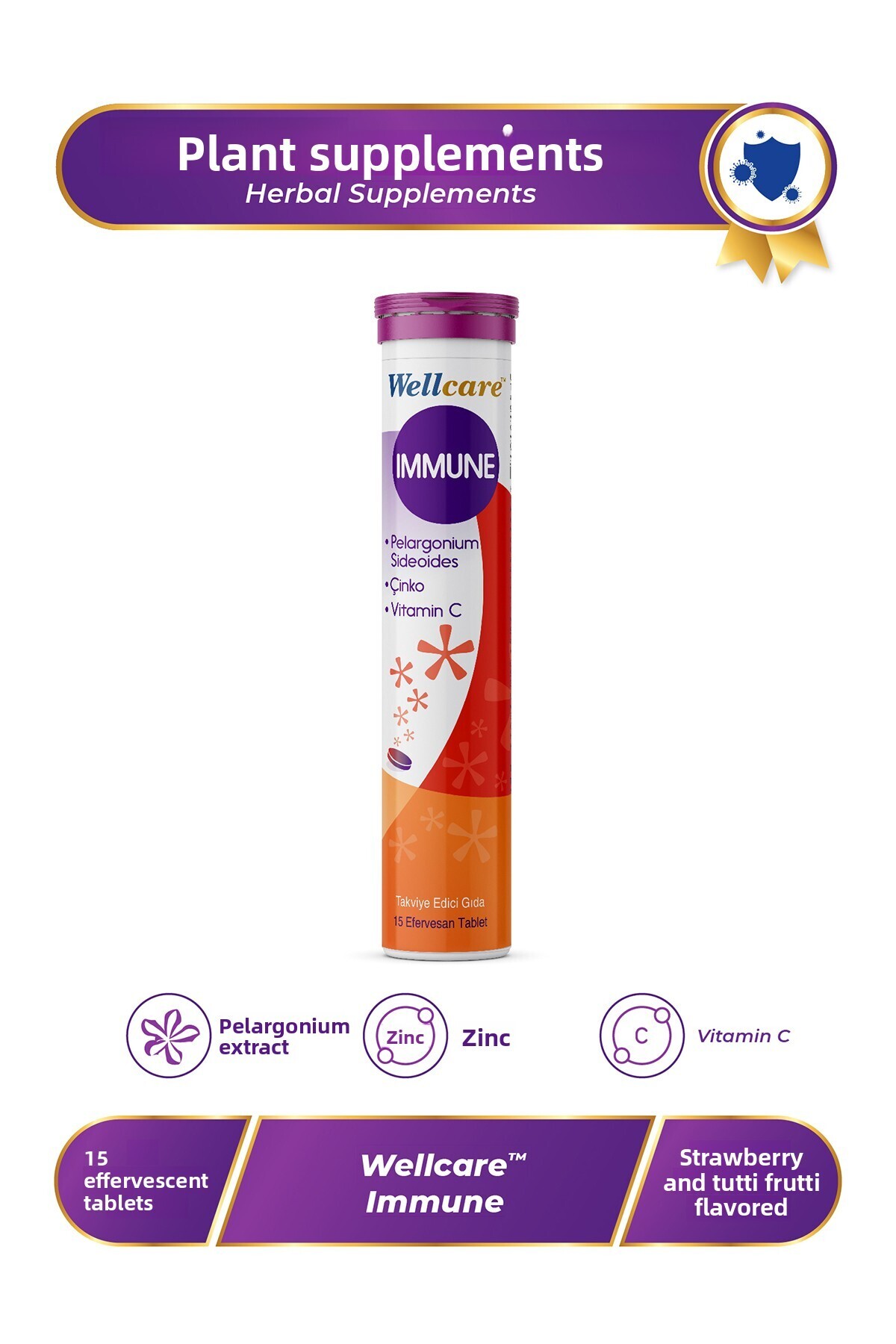 Wellcare Immune Immunity 15 Effervescent Tablets features