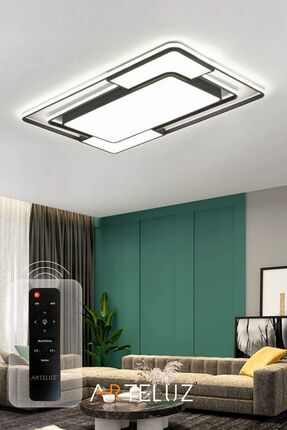 Ledmi Lighting Yüksek Aydınlatmalı Dikdörtgen Siyah Tavan Led Avize,3 Renk Aydınlatma,kumandalı Avize,salon Avizesi