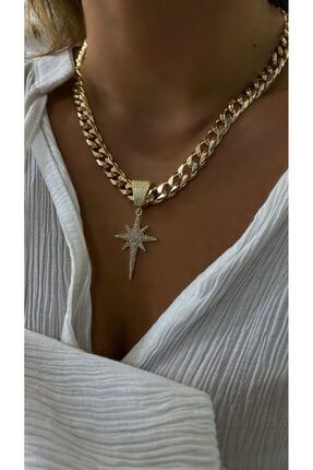 latif kuyumcu 22 Ayar Altın Kolye Füzyon Döküm Yoncalı Kolye Ucu Ve Halat Zincir