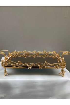 Aslı Hediyelik 2'li Gold Dikdörtgen çay, kahve, Servis Sunum Tepsisi