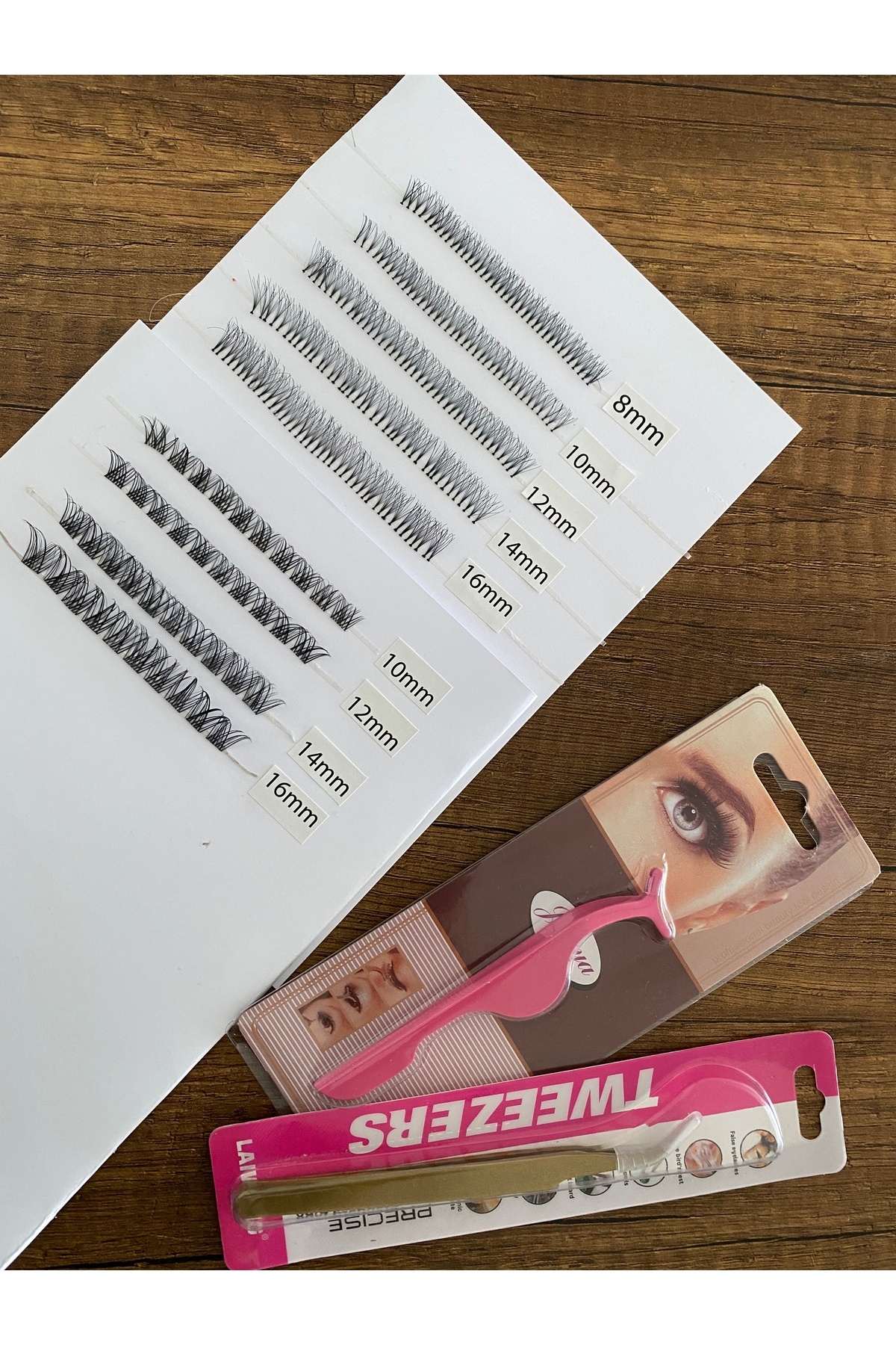 5D Kirpik Ekspres kirpik seti hibrit kirpik ipli kirpik 18ip +Kavisli cımbız +Aplikatör