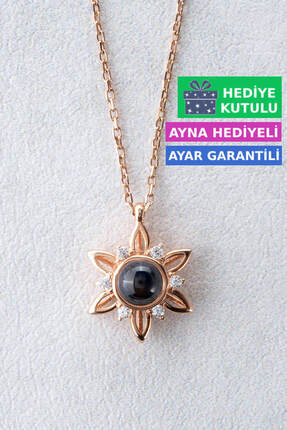 JewelmimYüz 100 Dilde Seni Seviyorum Yazan 18 Ayar Rose Altın Kaplama 925 Ayar Kadın Gümüş Çiçek Kolyesi