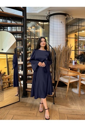 MOODMODA Lisa Kadın Saten Abiye Lacıvert