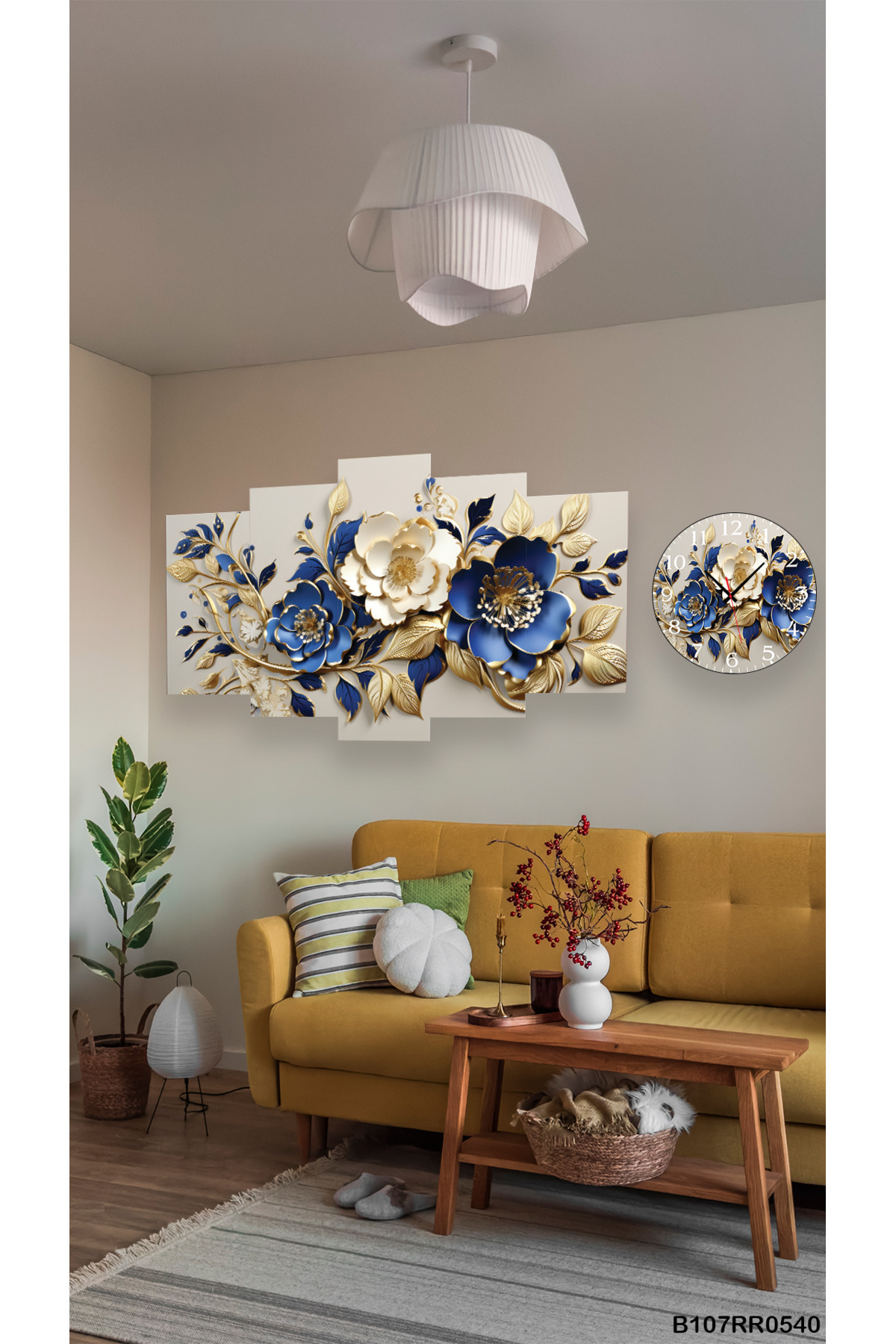 A2ZTR Duvar Mdf Tablo 5 Parça Set Ve saatli