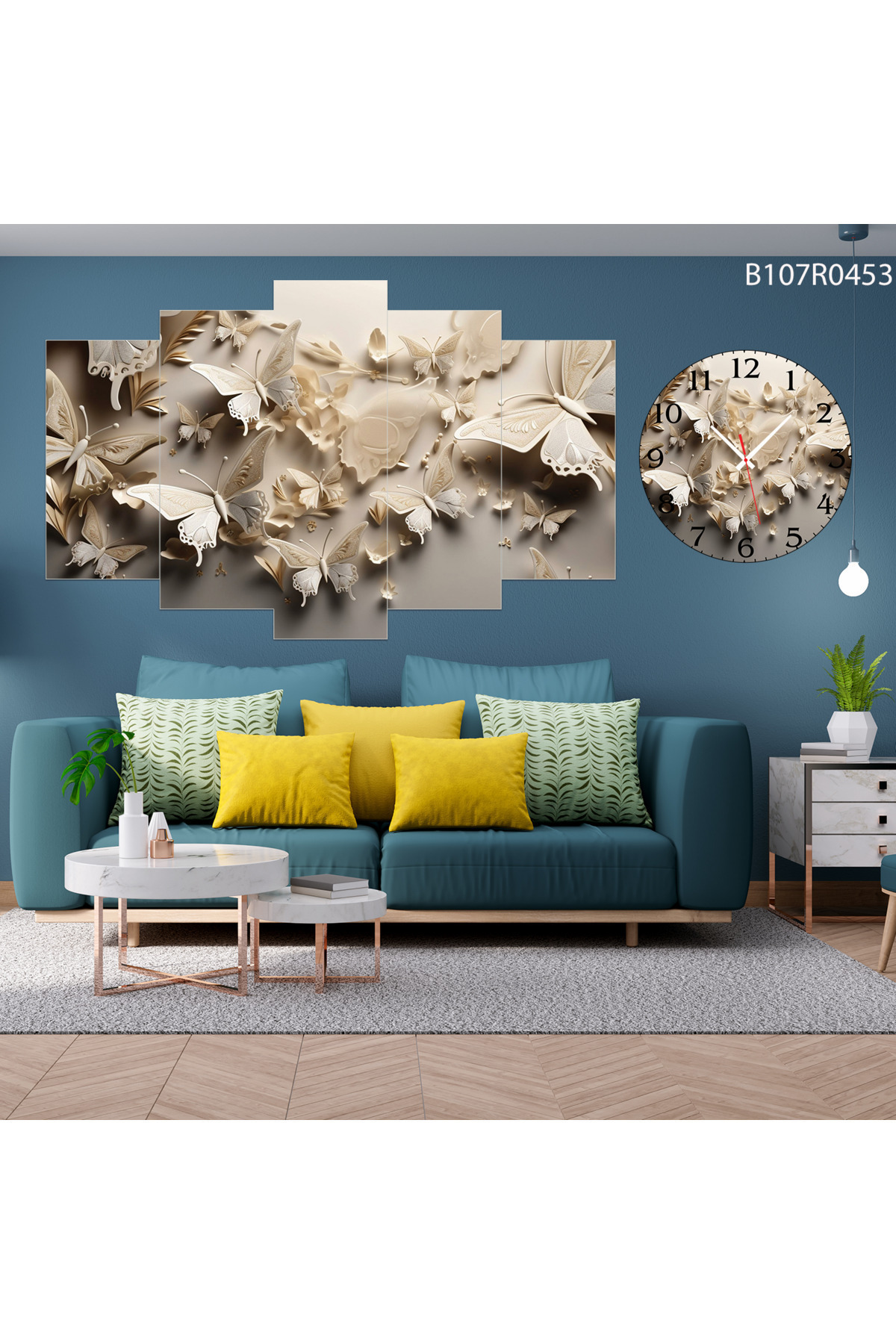 A2ZTR Parçalı Ahşap Duvar Tablo 5 Parça Set Ve saatli