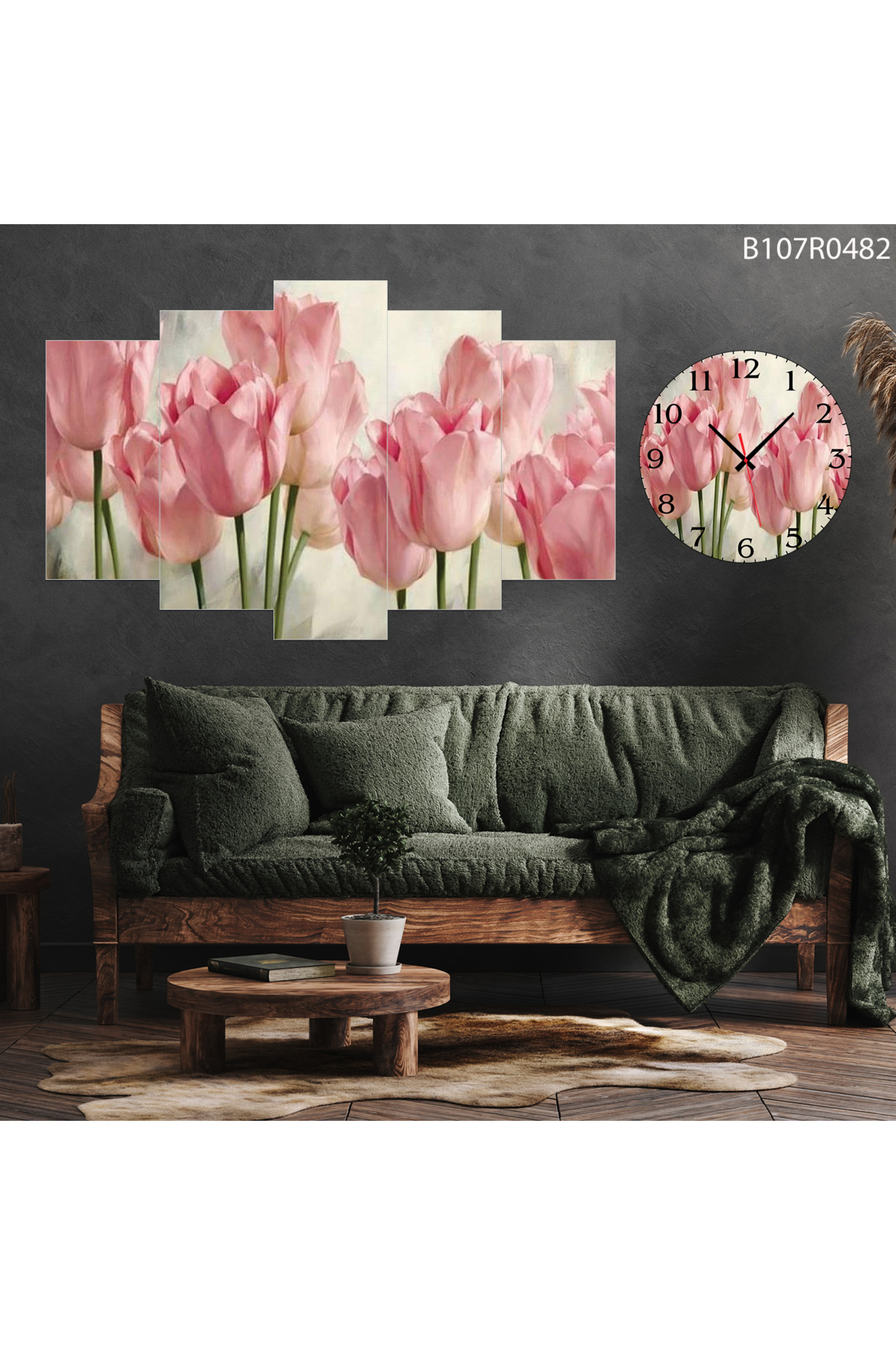 A2ZTR Parçalı Ahşap Duvar Tablo 5 Parça Set Ve saatli
