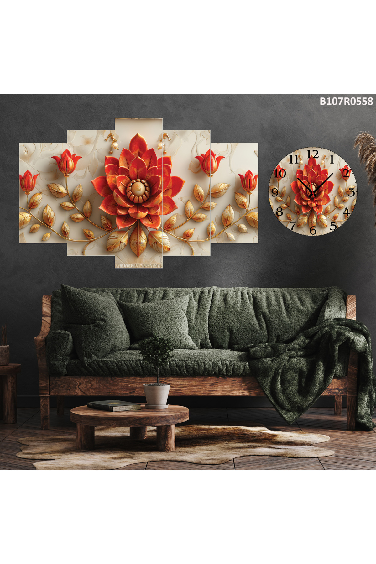 A2ZTR Tablo Duvar Mdf Tablo 5 Parça Set Ve Saatli