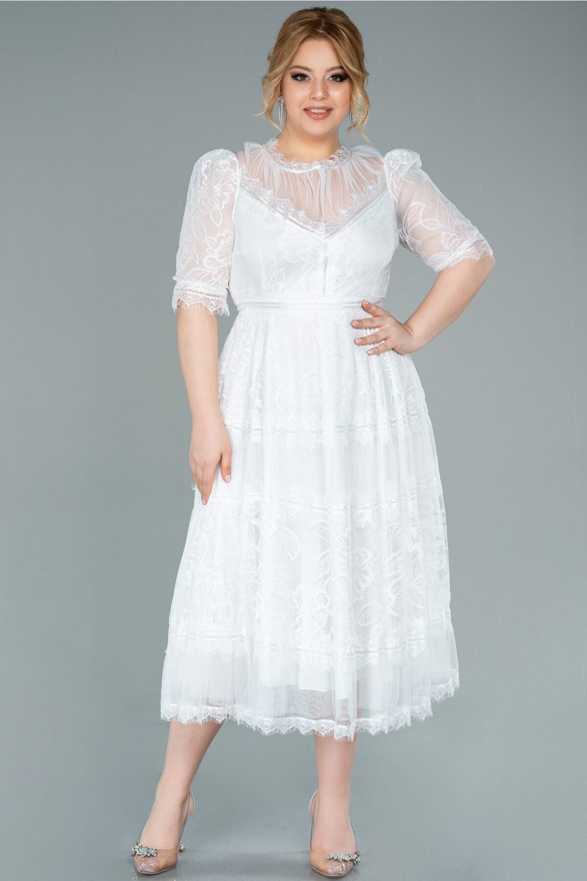 Abiyefon Ekru Kısa Kol Midi Dantel Büyük Beden Abiye Abk1396 Özellikleri