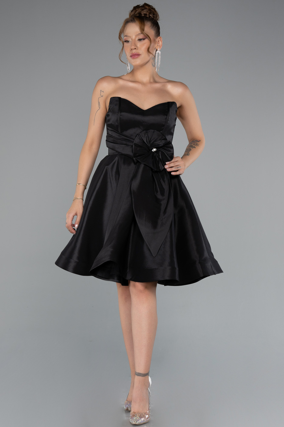 Abiyefon Siyah Straplez Kısa Saten Davet Elbisesi ABK2393 Özellikleri