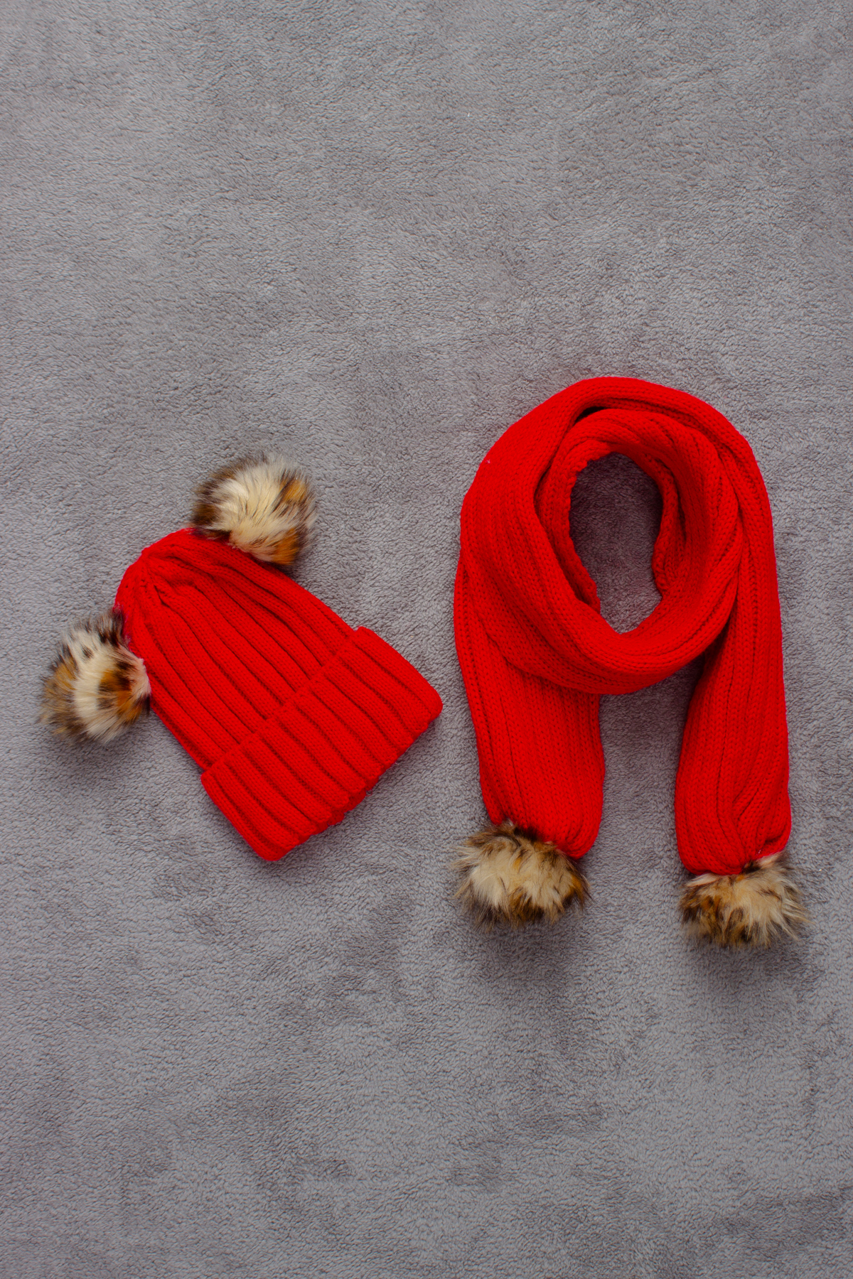 ADA BEBEK ÇOCUK Çift Ponponlu Atkı Bere Takımı