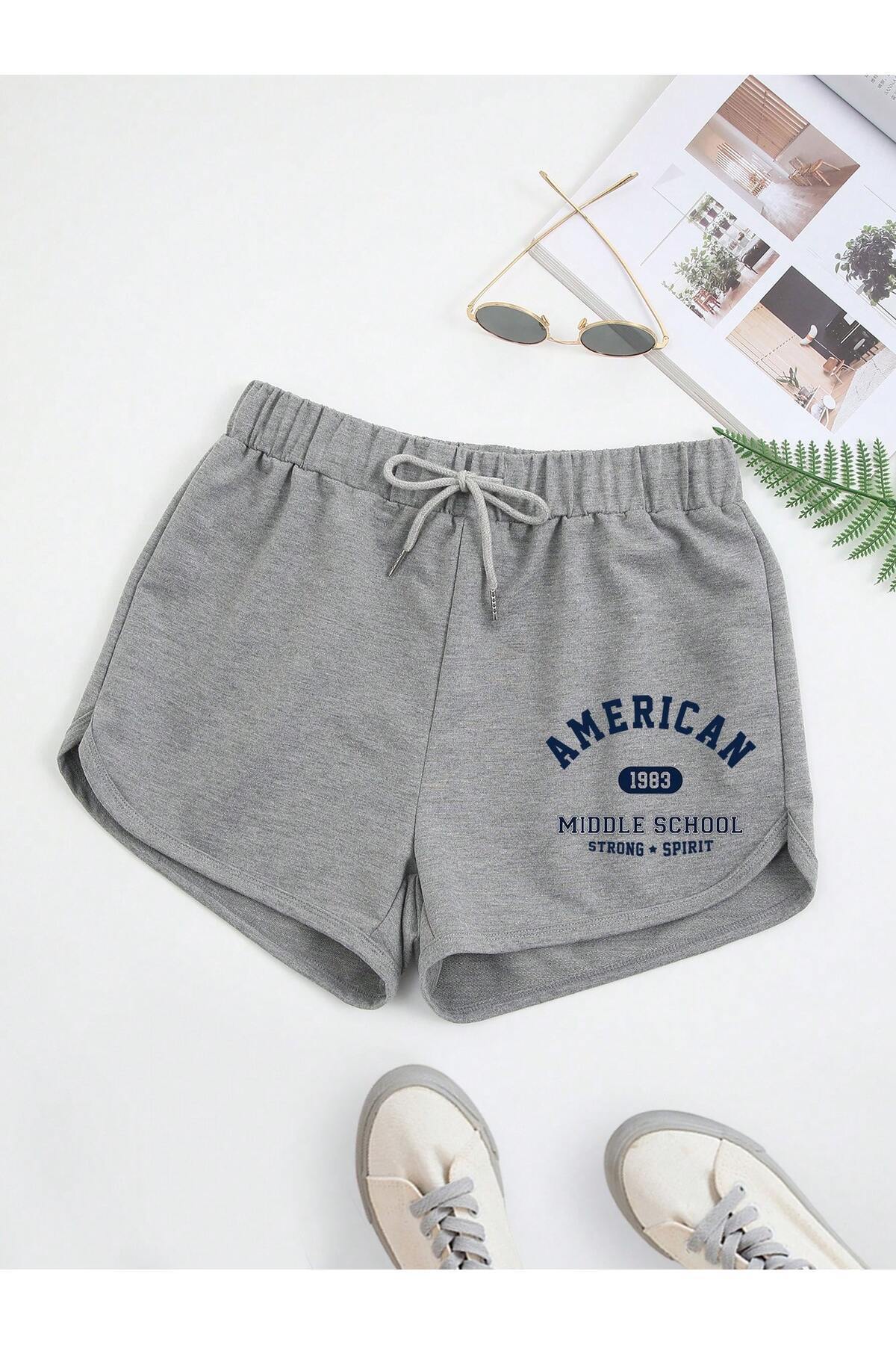 Adrift Letter Graphic Drawstring Waist Track Şort