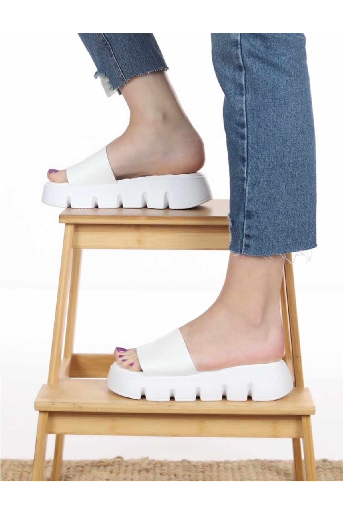 Afilli Kadın Beyaz Tek Bant Kalın Platform Taban Önü Açık Günlük Spor Terlik Yazlık Ayakkabı Özellikleri