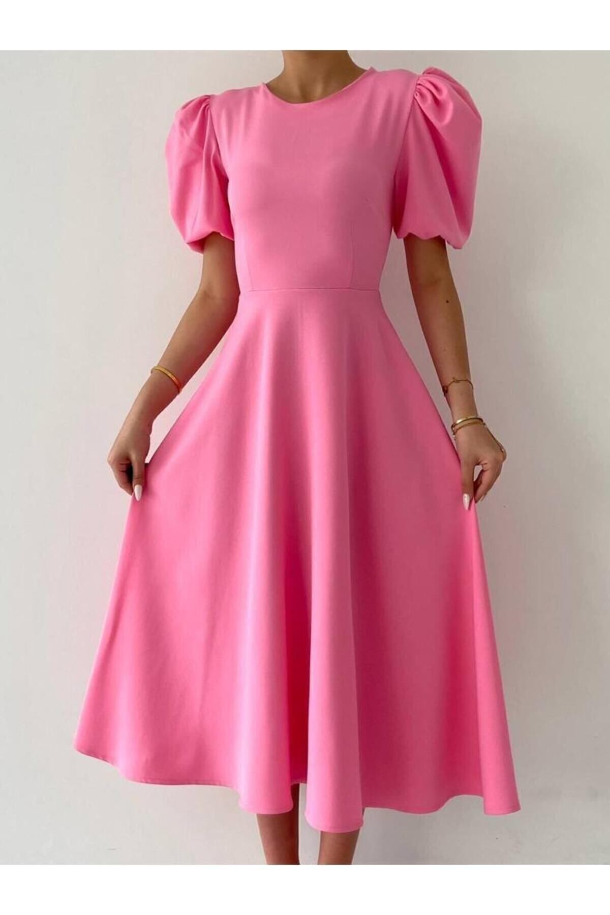 Afiş Butik Pembe Karpuz Kollu Midi Boy Elbise