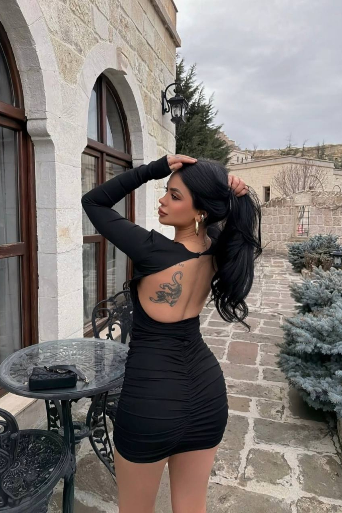 Afitapbutikmoda Vatkalı Sırt Dekolteli Basic Mini Elbise