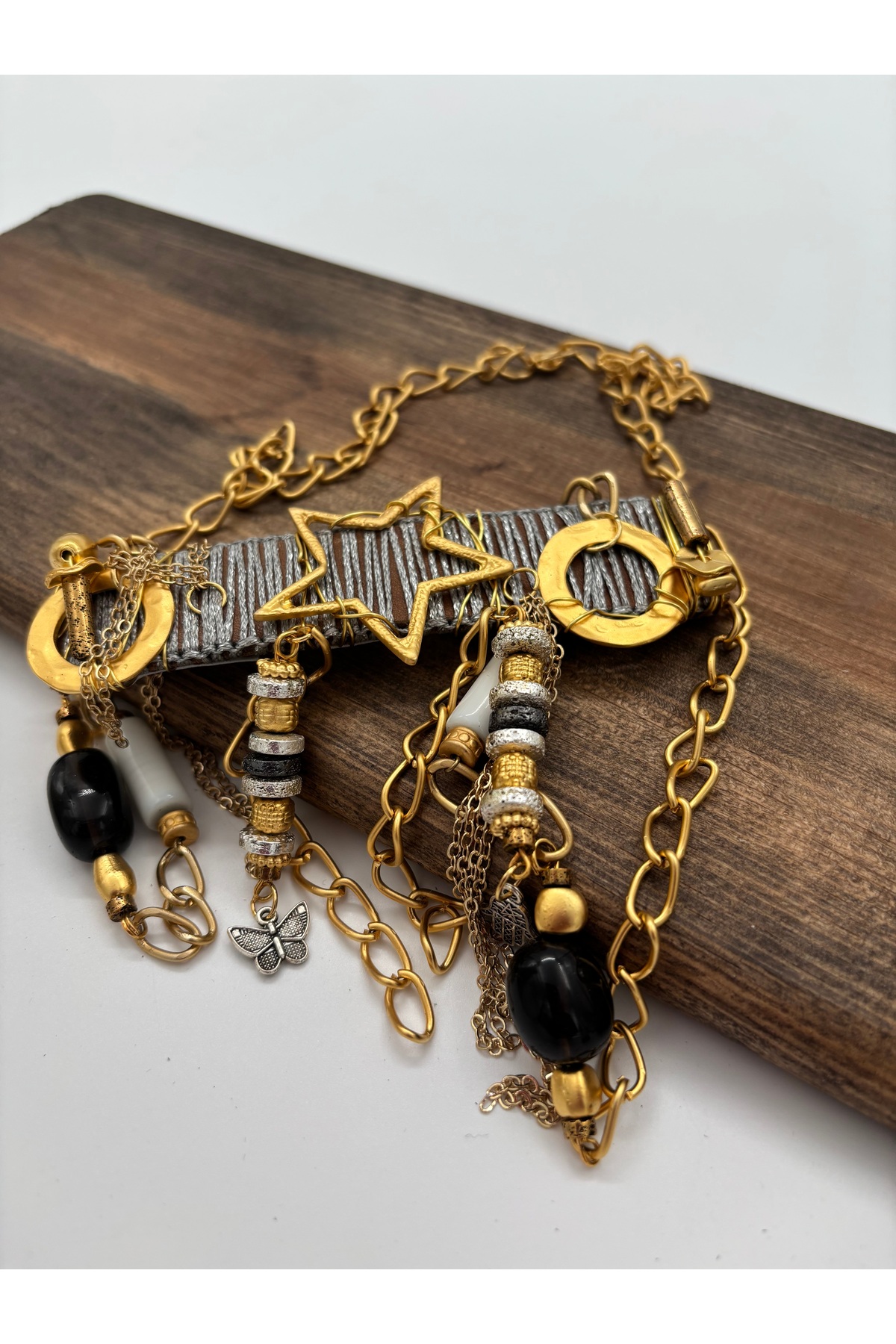 Deri , metal, makrome ipi