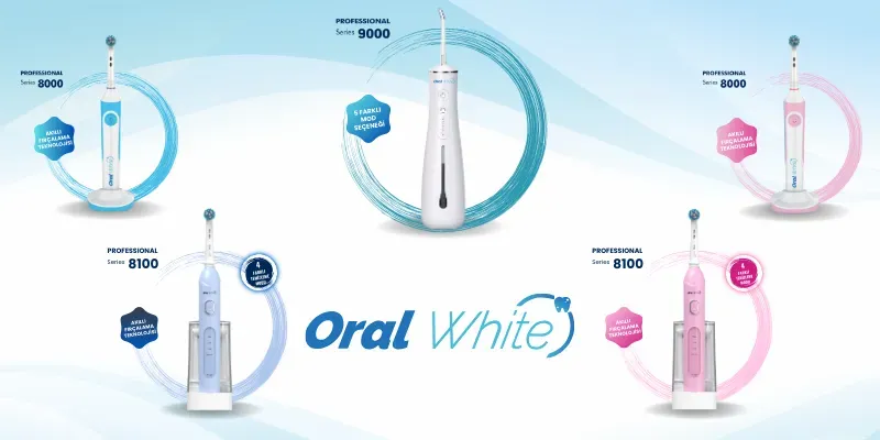 Oral White 4 Modlu Professional Series 8100 Şarjlı Diş Fırçası Mavi ve Pembe İkili Set