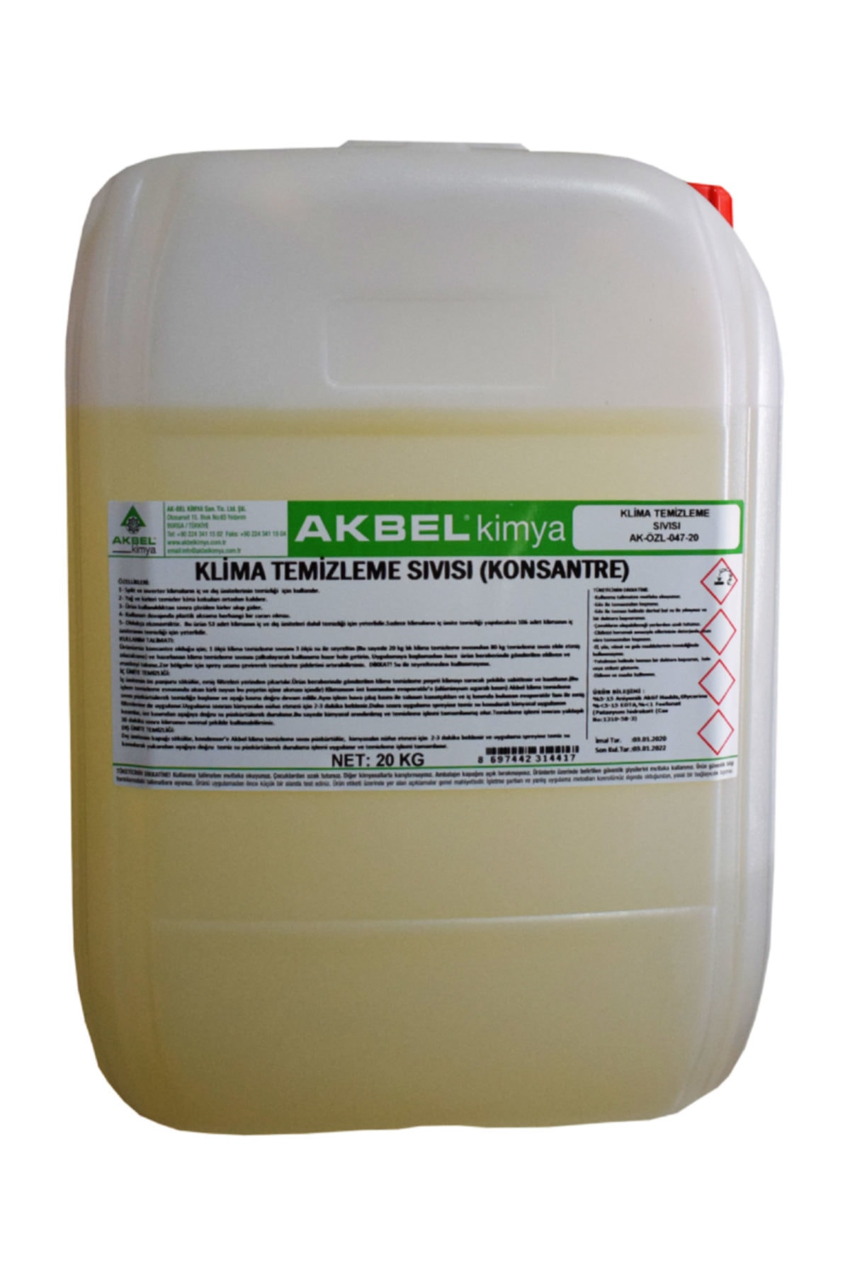 akbel Klima Temizleme Sıvısı Konsantre 20 Kg 10 Adet Klima Temizleme Poşeti Özellikleri