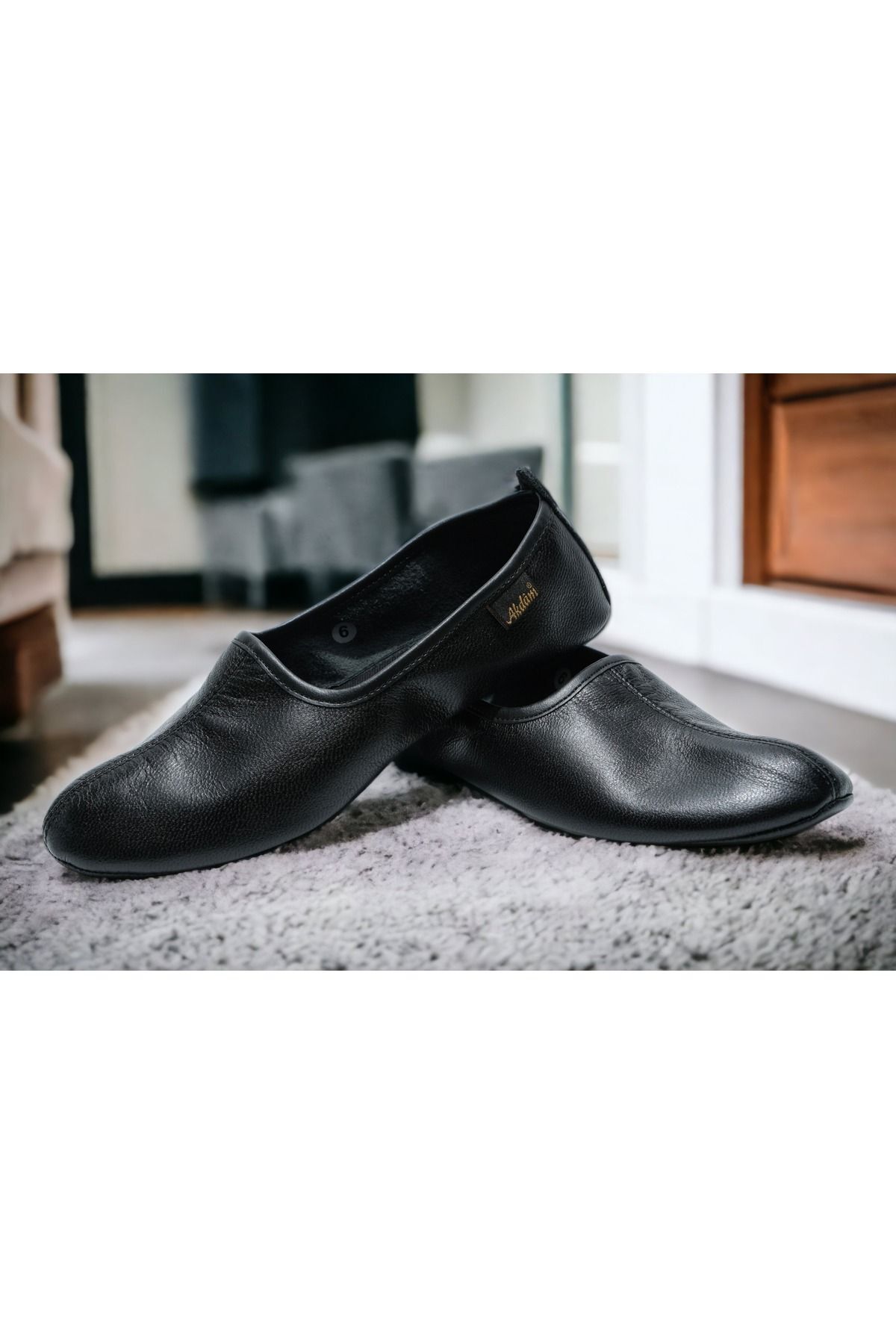 Akdam Siyah Ev Ve Tavaf Ayakkabısı "%"100 Deri Hac Umre Tavaf Ve Ev Ayakkabısı Siyah