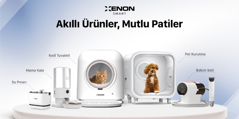 Xenon Smart Akıllı Otomatik Kedi Tuvaleti Evcil Hayvan Kurutma Makinesi, Mama ve Su Kabı 6'lı Pet Ürünleri Seti