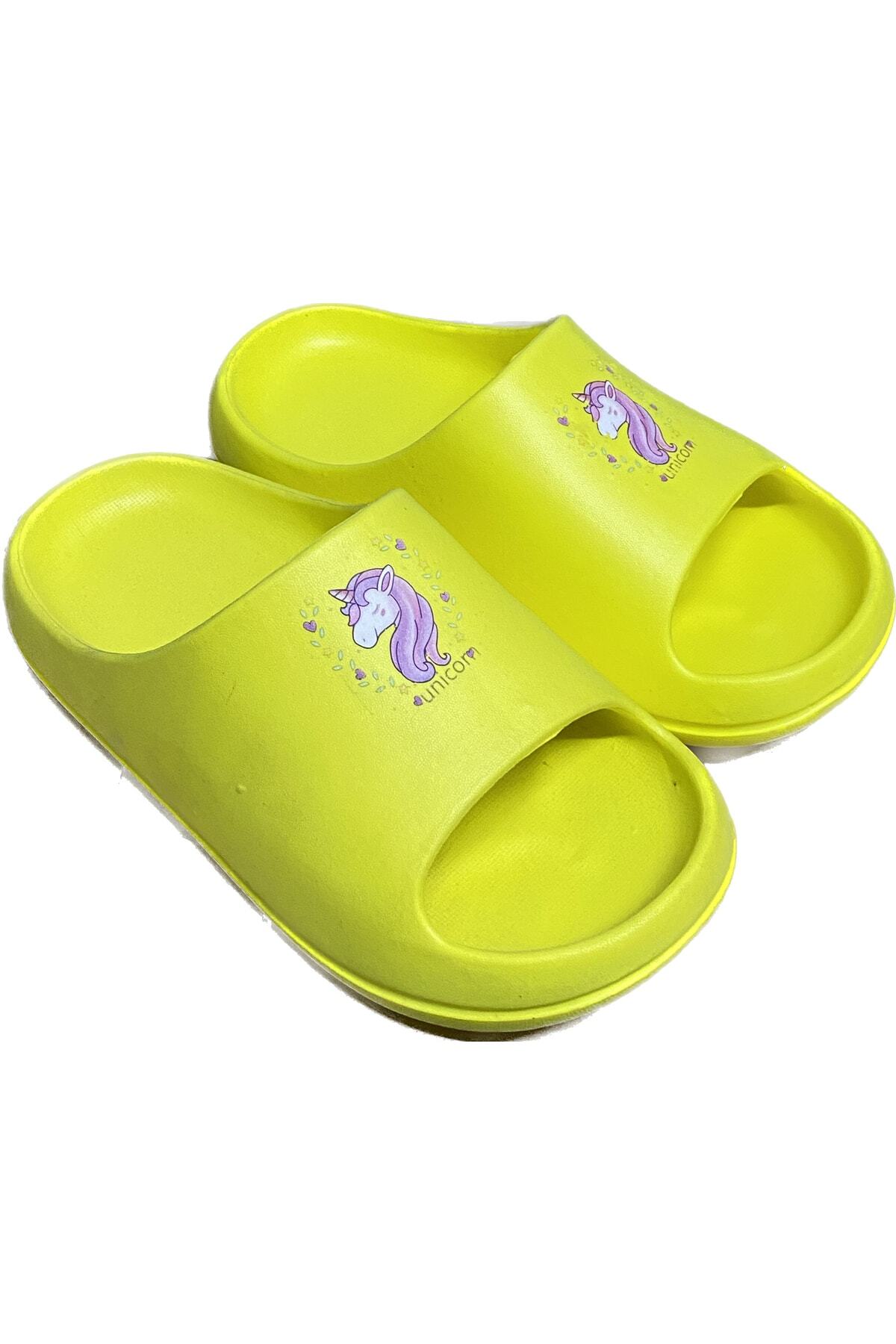 AkınalBella Sarı Kız Çocuk Unicorn Baskılı Slide Terlik