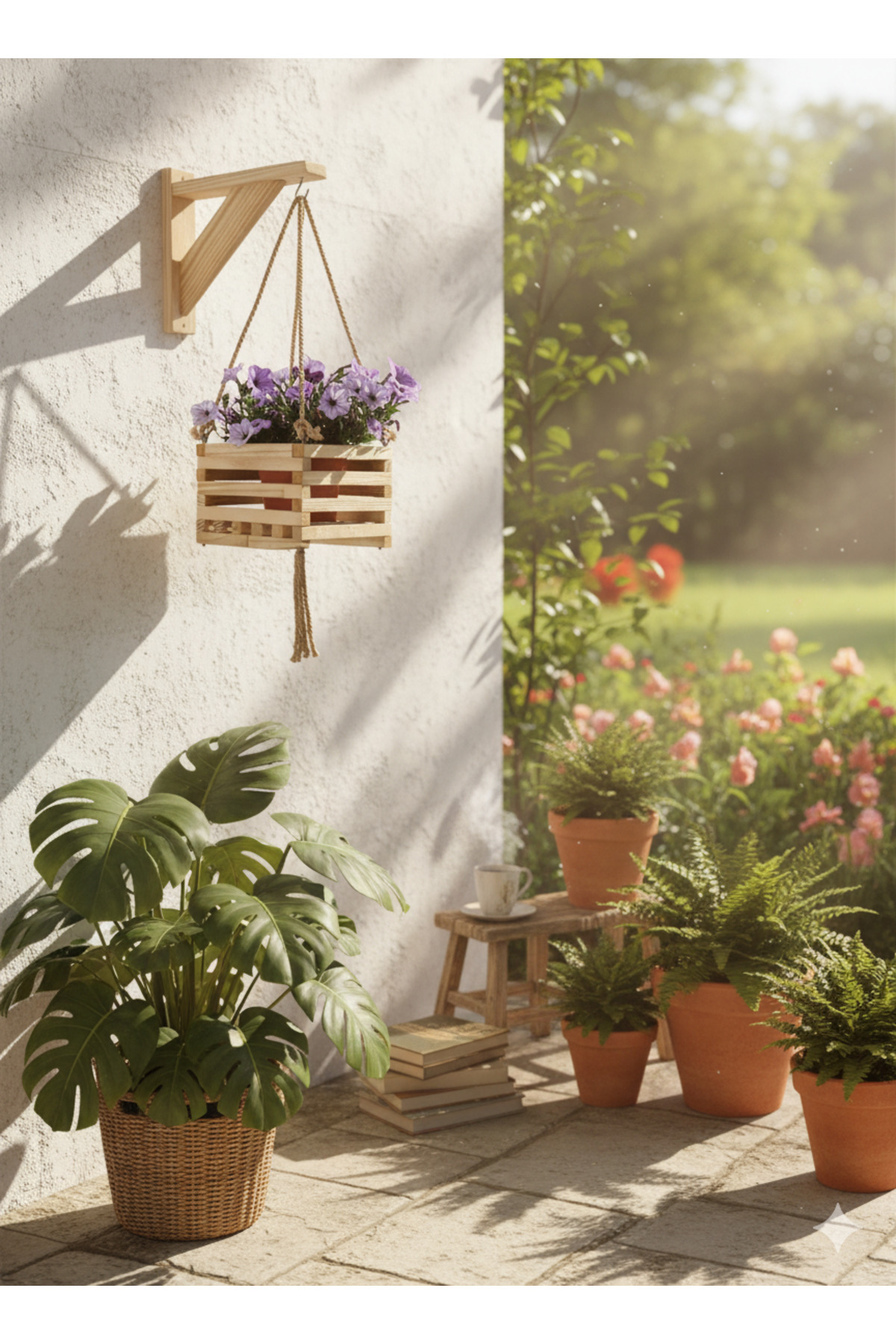 Akinsc Mobilya Dekorasyon Halatlı Ahşap Çiçeklik