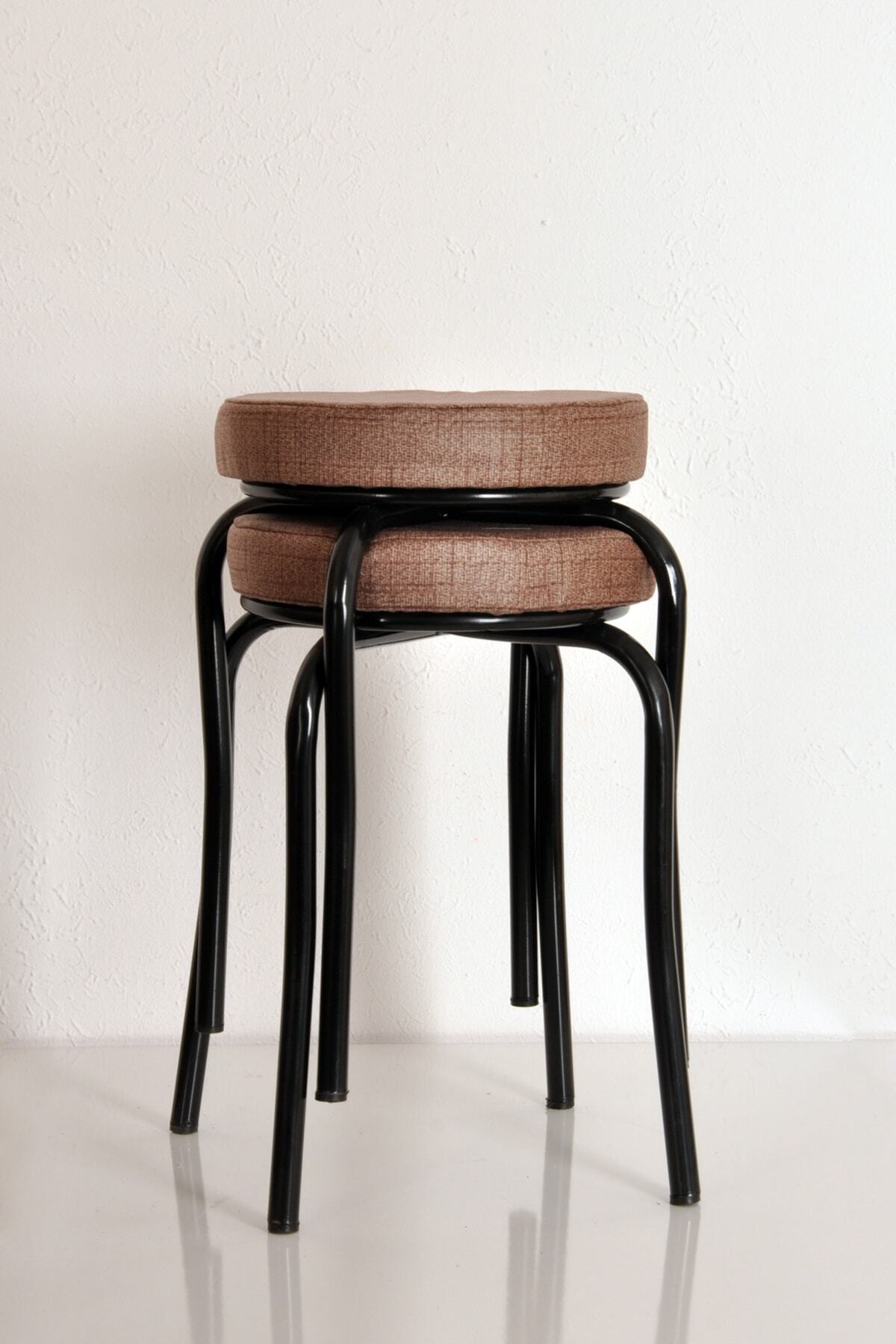 AKK TİCARET 2 Adet Desenli Kahverengi Renk Kumaş Siyah Profil Demir Tabure Mutfak Taburesi (DEMONTE) Özellikleri