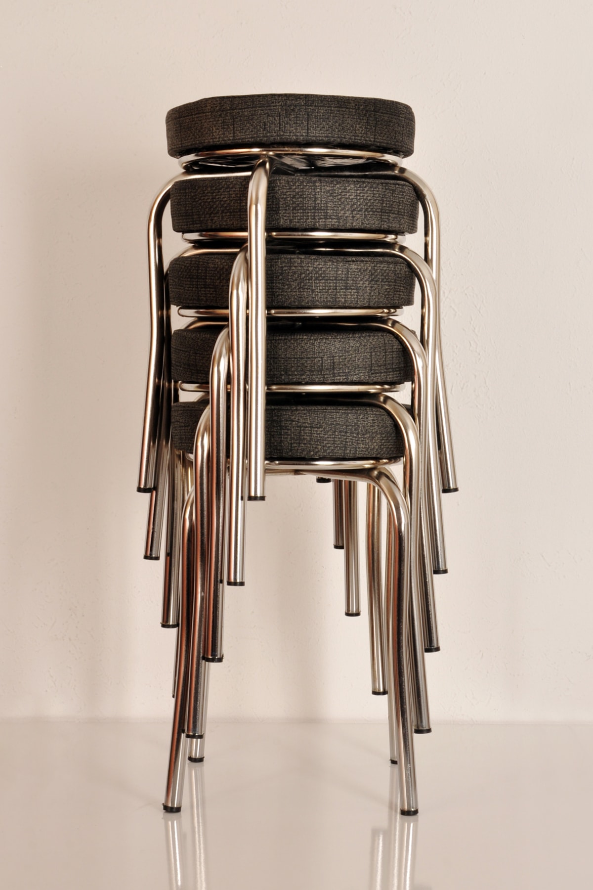 AKK TİCARET 5 Adet Antrasit Desenli Renkli Kumaş Nikelajlı Demir Tabure Mutfak Taburesi