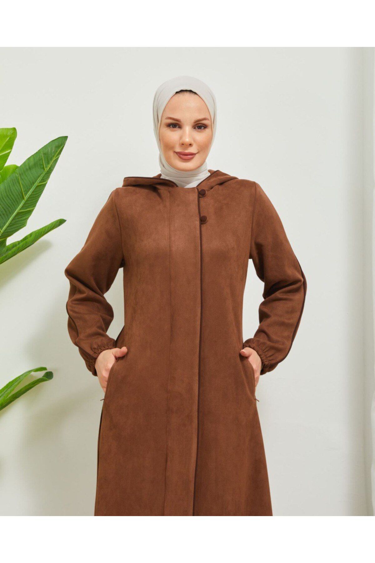 Ala Ferace Kapüşonlu Scuba Süet Taba Pardesü Özellikleri