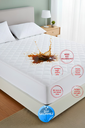 2444+ ÜrünNart Home Yatak Alezi Pamuklu Kapitone Fitted Full Kenar Sıvı Geçirmez Yatak Koruyucu Beyaz