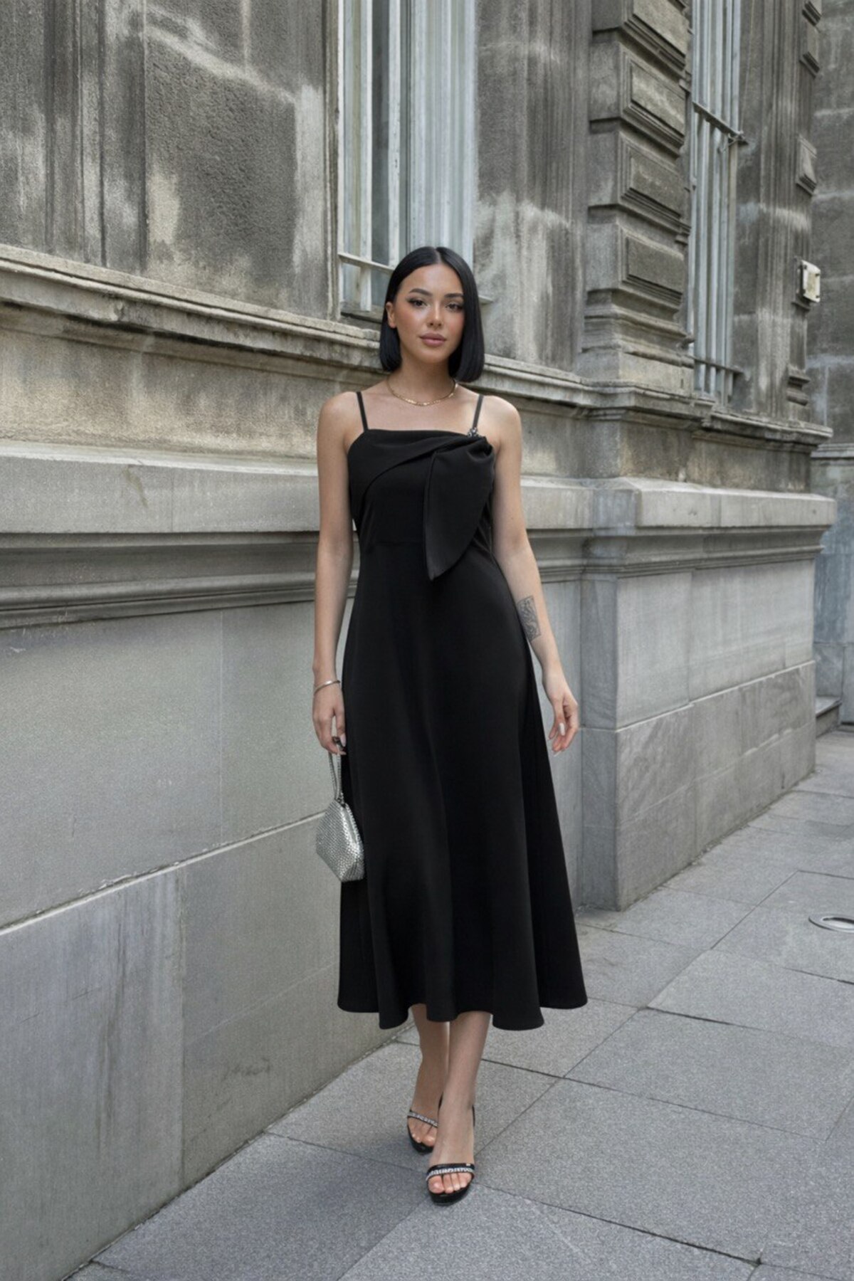ALFUDO Moda Collection Askılı Drapeli Midi Elbise