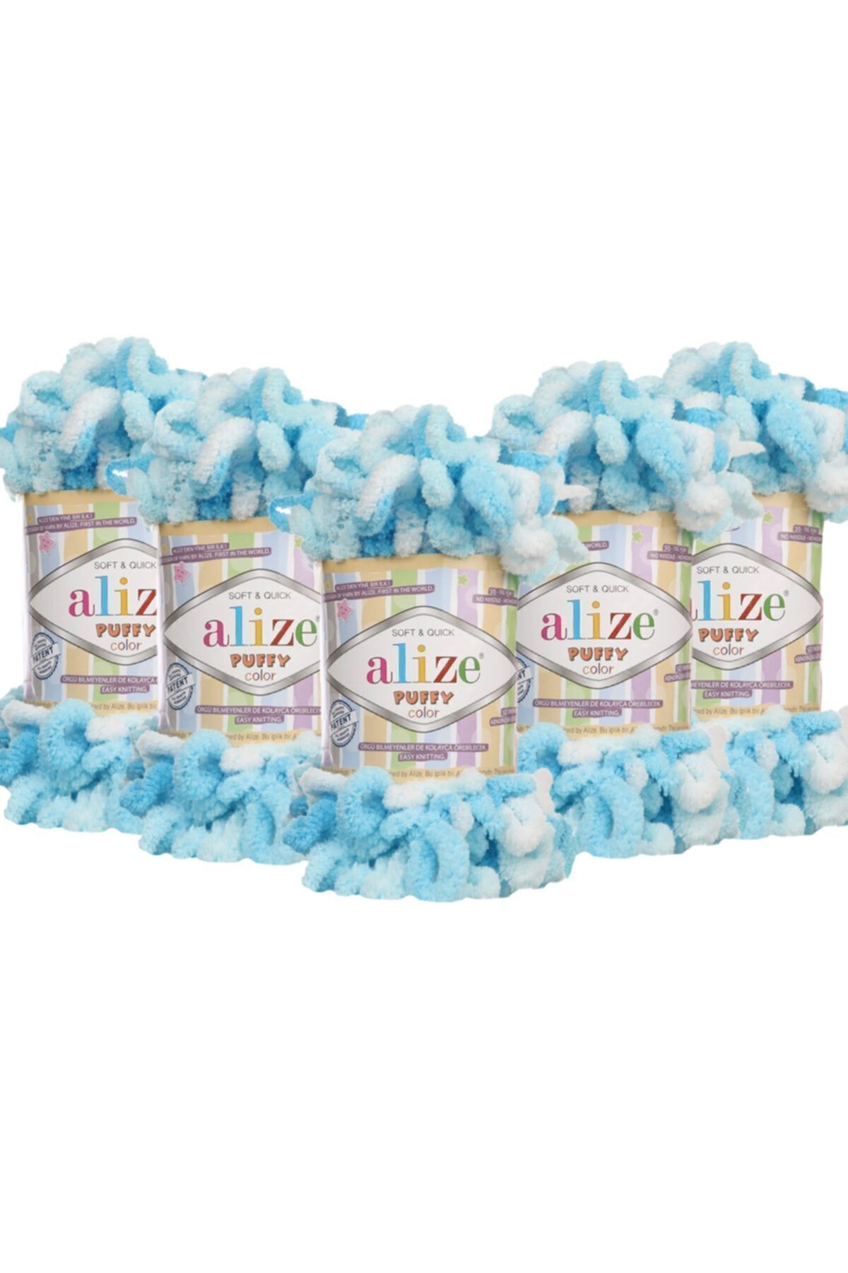 Alize (5 Adet ) Puffy Color El Örgü Ipliği 5'li Paket - 5924 Canlı Mavi - 100 Gr. 9 Mt. Parmak Örgü Ipi