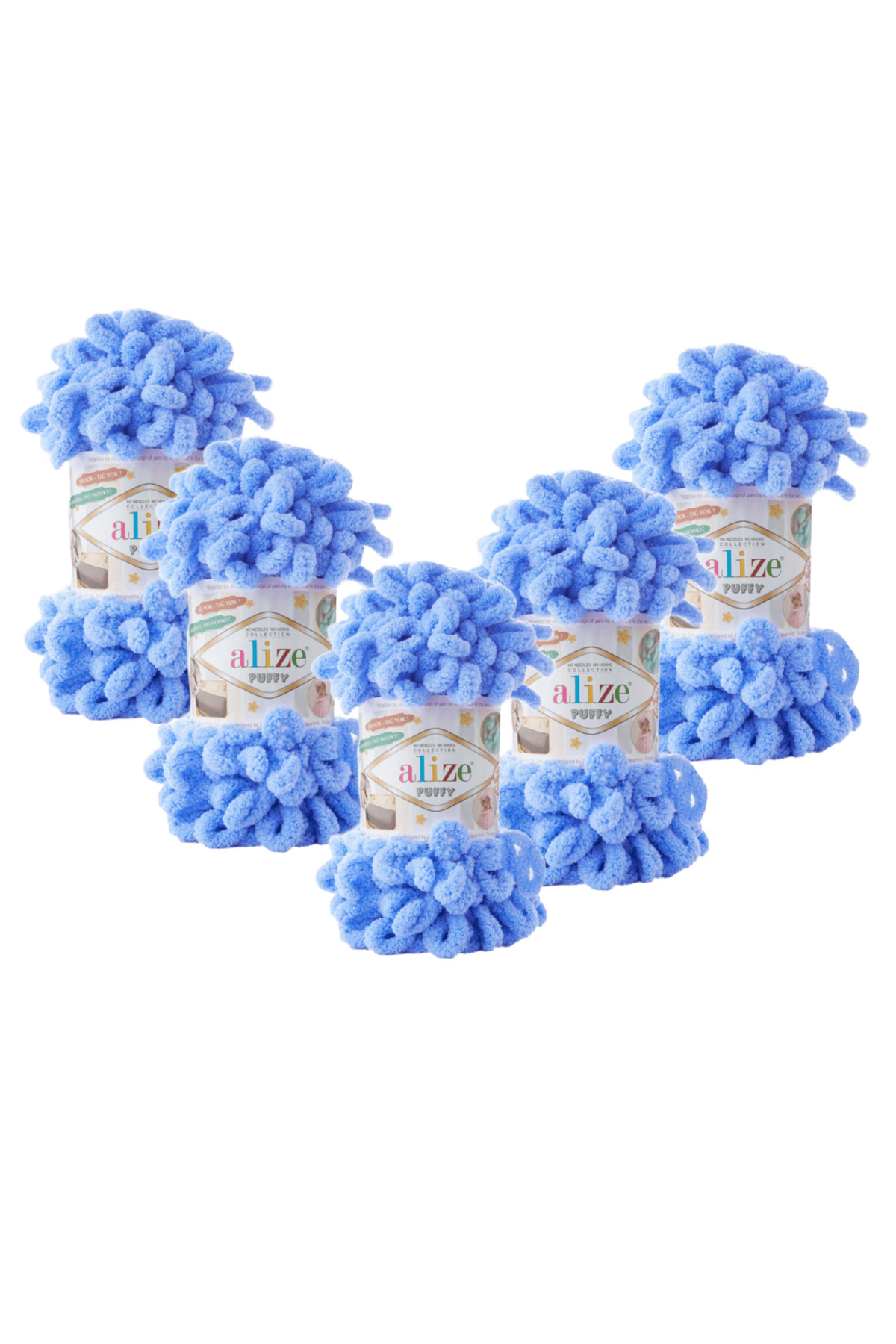 Alize ( 5 Adet ) Puffy El Örgü Ipliği 5'li Paket - 112 Mavi - 100 Gr. 9 Mt. Parmak Örgü Ipi