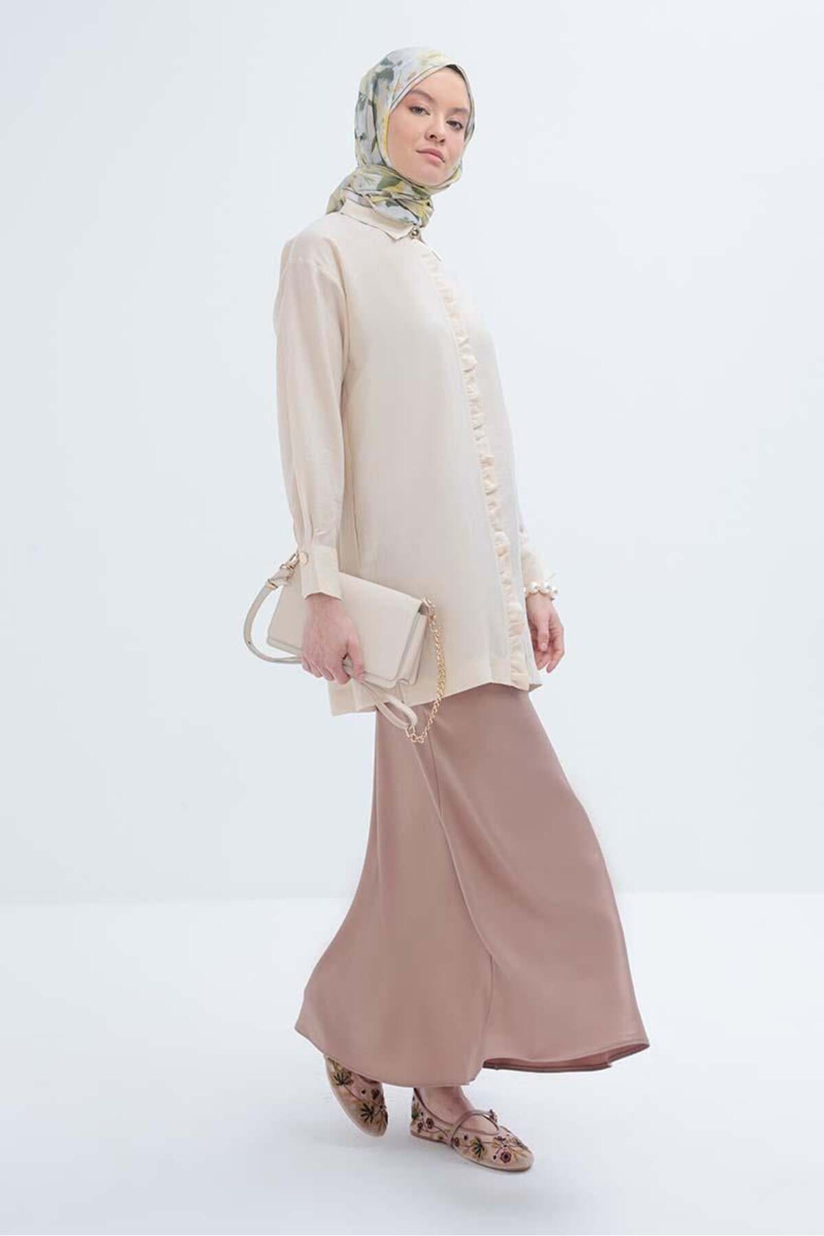 ALLDAY Açık Bej-Fırfırlı Yırtmaçlı Gömlek Özellikleri