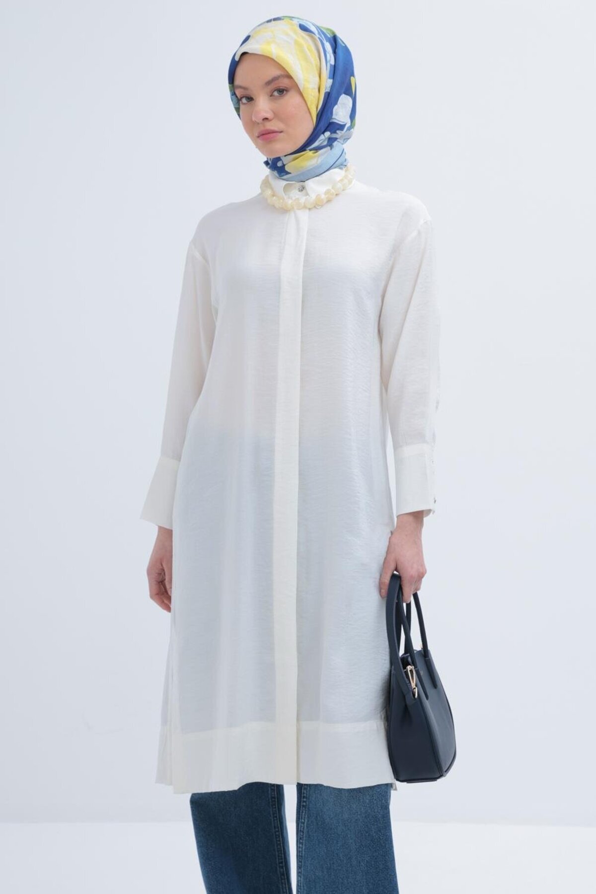 ALLDAY Ekru-Taş Düğmeli Uzun Modal Gömlek
