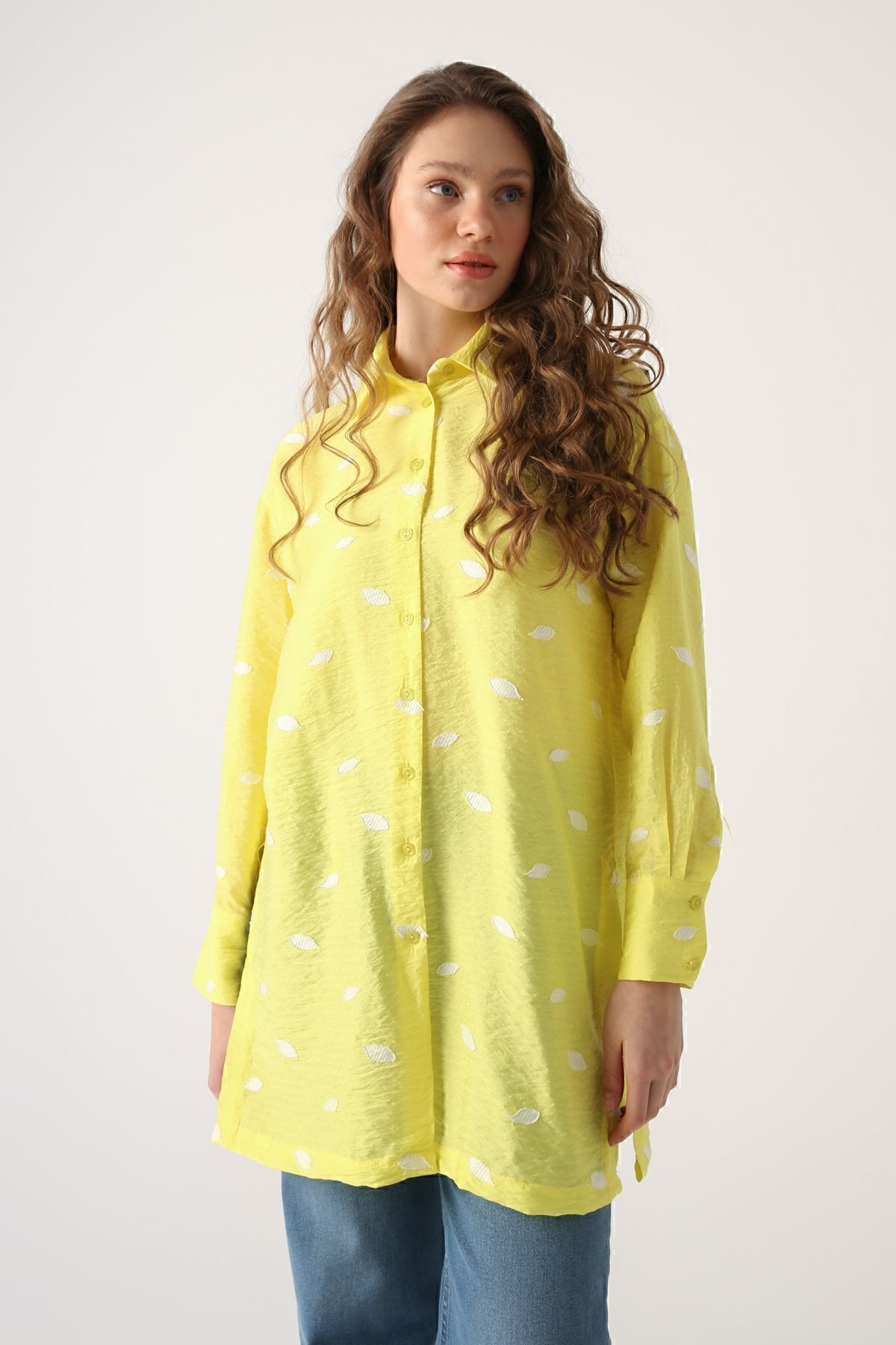 ALLDAY Sarı Oversize Yırtmaçlı Desenli Gömlek Tunik Özellikleri