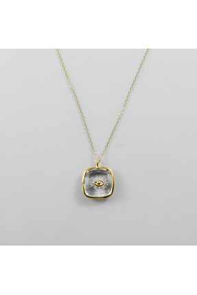 ESSARE 925 Ayar Gümüş Gold Kaplama Ayetel Kürsi Nazar Plaka Kolye