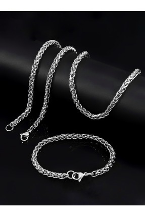 AK STORE SİLVER Gümüş Kaplama 316 L Paslanmaz Çelik Ezme Gurmet Sık Örme İtalyan Model Zincir Kolye 5 MM Gold