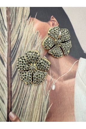 AychaAksesuar Çelik incili altın renk büyük çiçek küpe