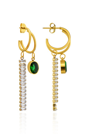 ESSARE 925 Ayar Gümüş Gold Kaplama 3'lü Baget Taşlı Gold Küpe