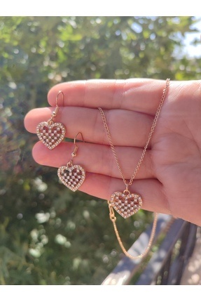 Luxe Loom Zarafetin Işıltısı Kadın Kararmayan Çelik Gold Zirkon Taşlı Küçük Kalpli T Harfli Çift Katman Kolye 006
