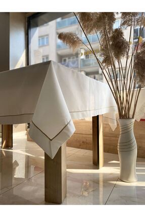 Zeren Home Piko Sarma Detaylı Polyester Keten Dertsiz Simli Masa Örtüsü Gold