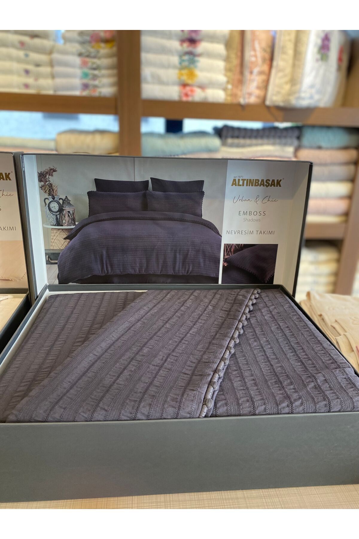 Altınbaşak Emboss Shadow Fitilli Saten Çift Kişilik Nevresim Takımı Özellikleri