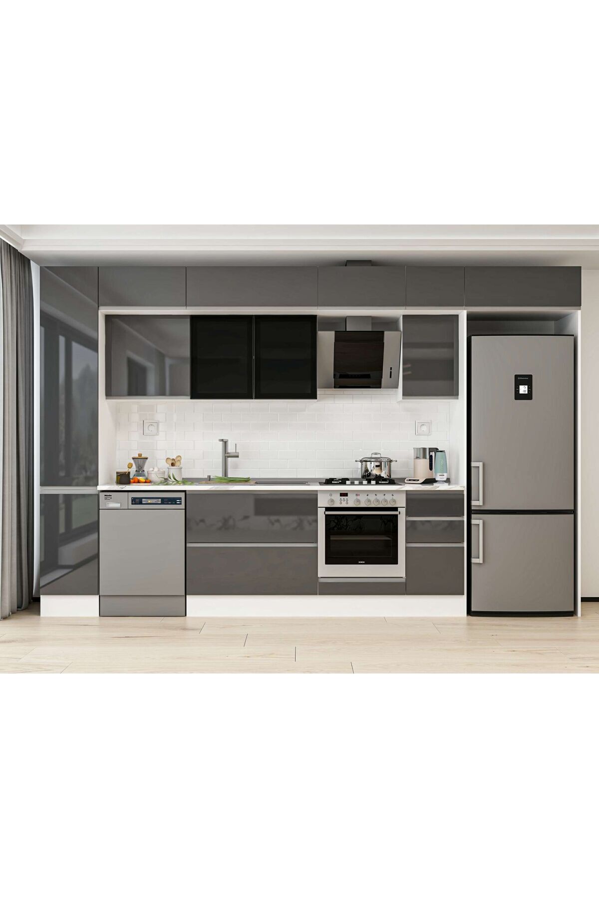 Alvinka 360X240 Cm High Gloss Mutfak Dolabı Mbb-E80B40S40-3 High Gloss | Antrasit - Suntalam