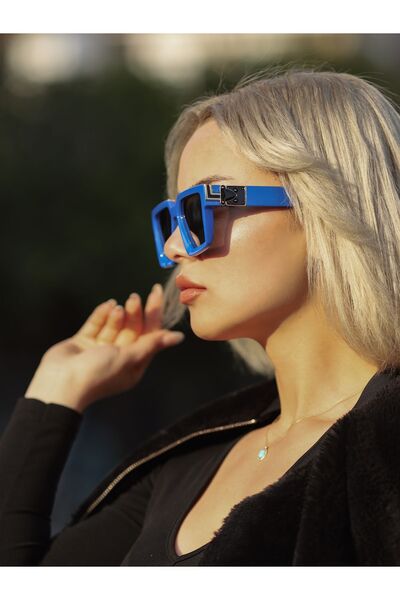 Angel Eyes Minimal Geometrik Tasarım Siyah Çerçeve Mavi Cam Güneş Gözlüğü Kadın&Erkek CE BELGELİ