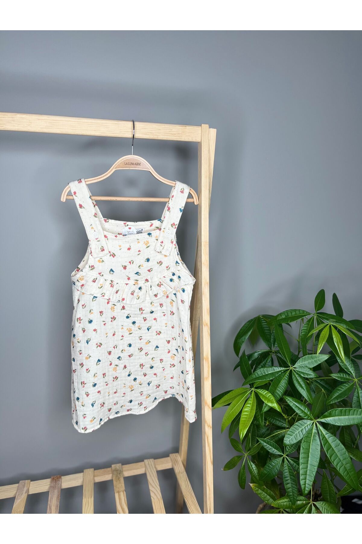 anonim Müslin Kumaş Çiçekli Astarlı Elbise-Krem