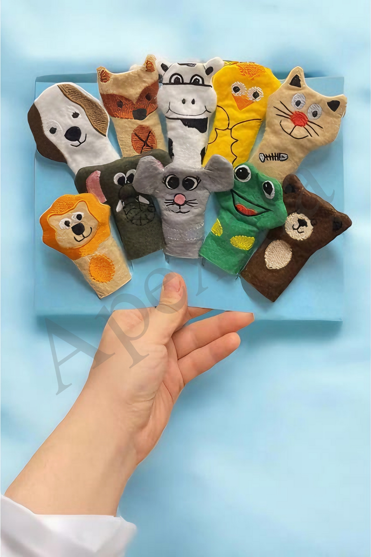 Apexma 10'lu Hayvanlar Parmak Kukla Seti - Eğitici 10 Adet Hayvan Parmak Kukla Oyun Seti