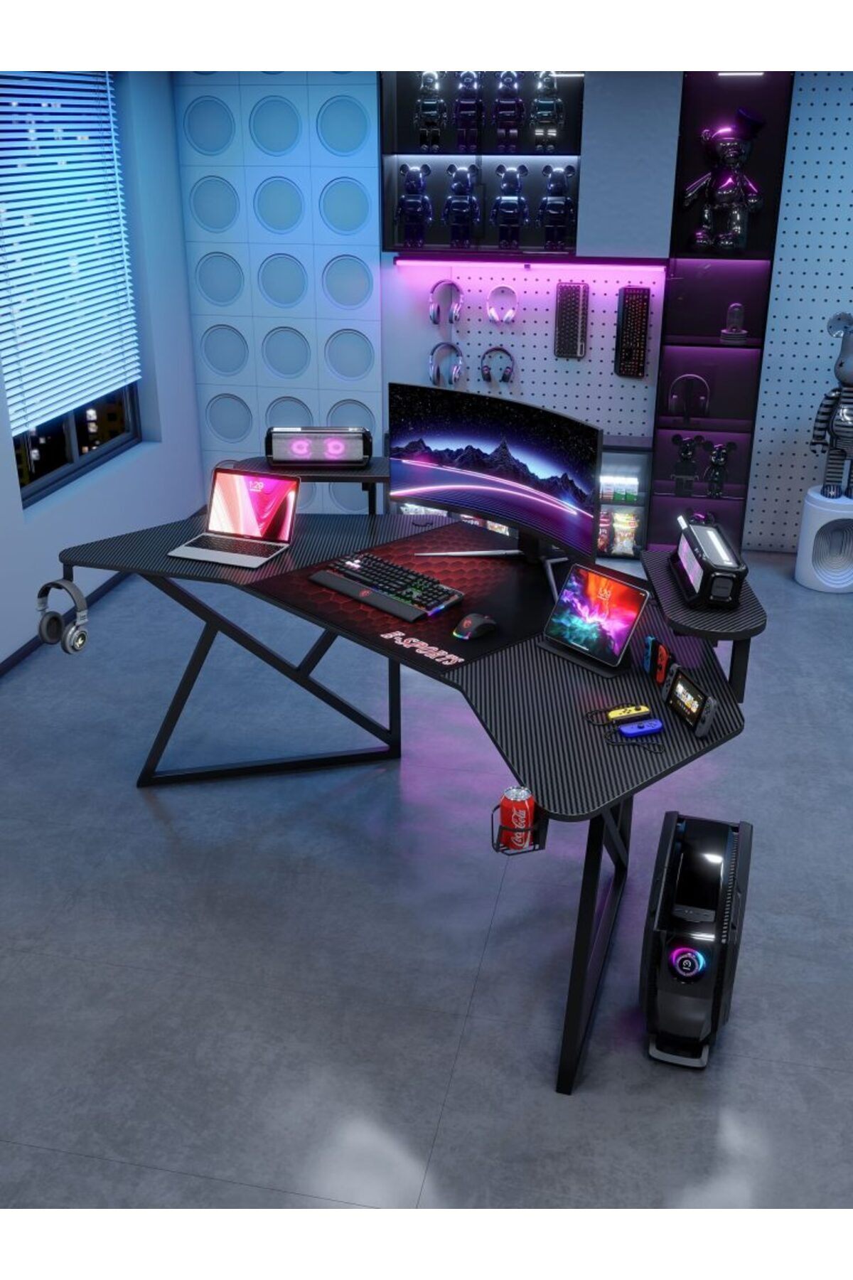 ميزات طاولة استوديو قيمنج كبيرة على شكل جناح 180 سم – أسود من 1st