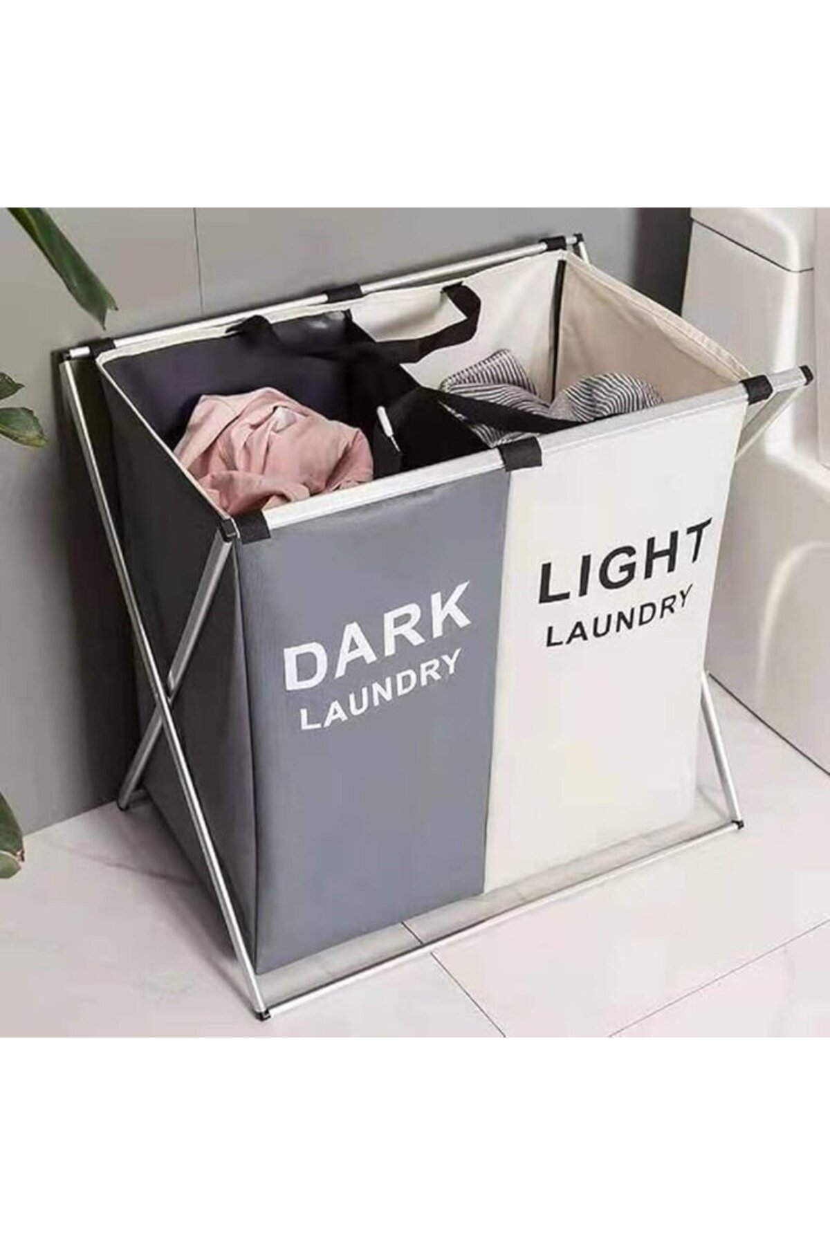 ميزات سلة غسيل الملابس قابله للطيل باللون الأبيض/الرمادي من 1st