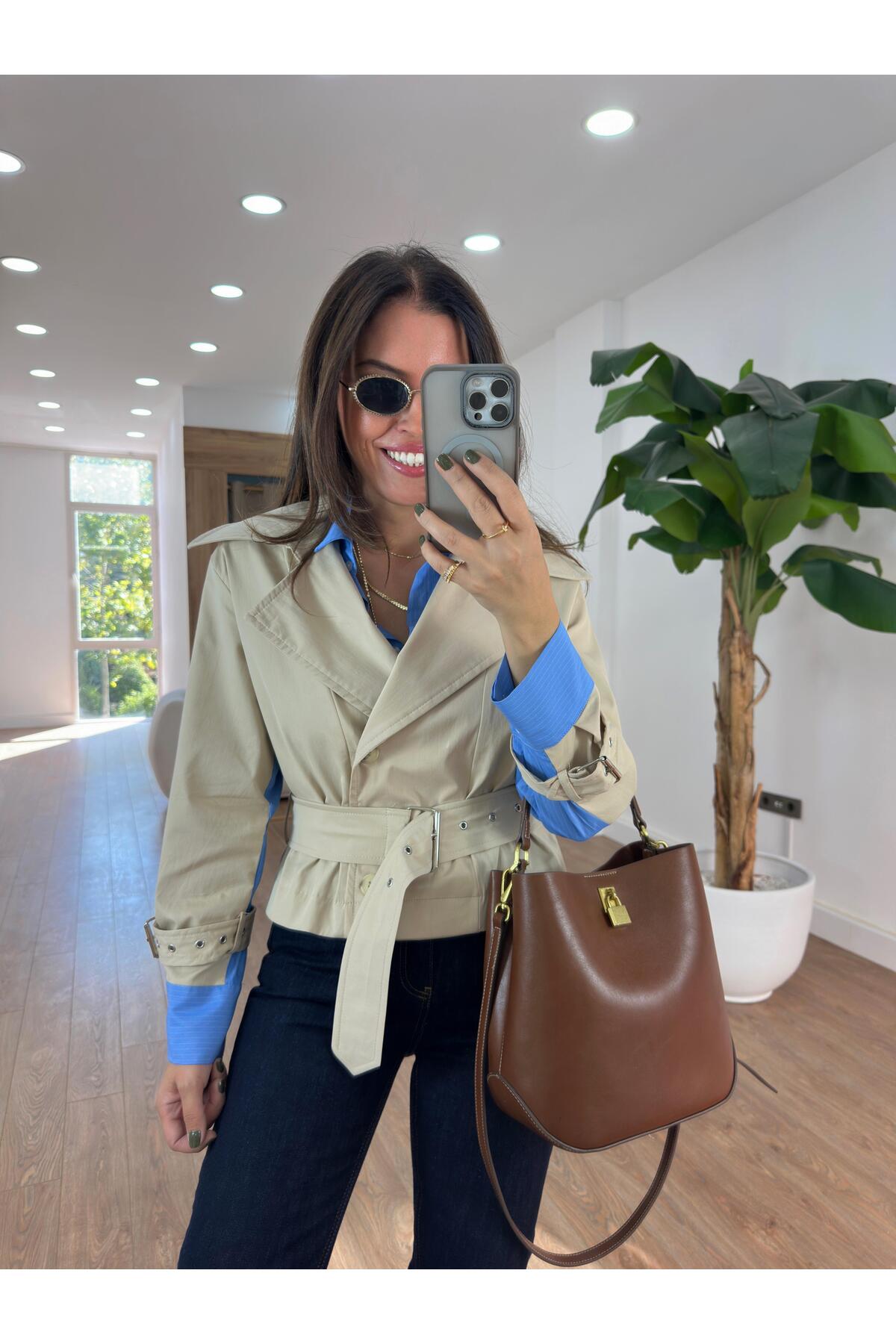 2she سترة مخططة من قماش البوبلين