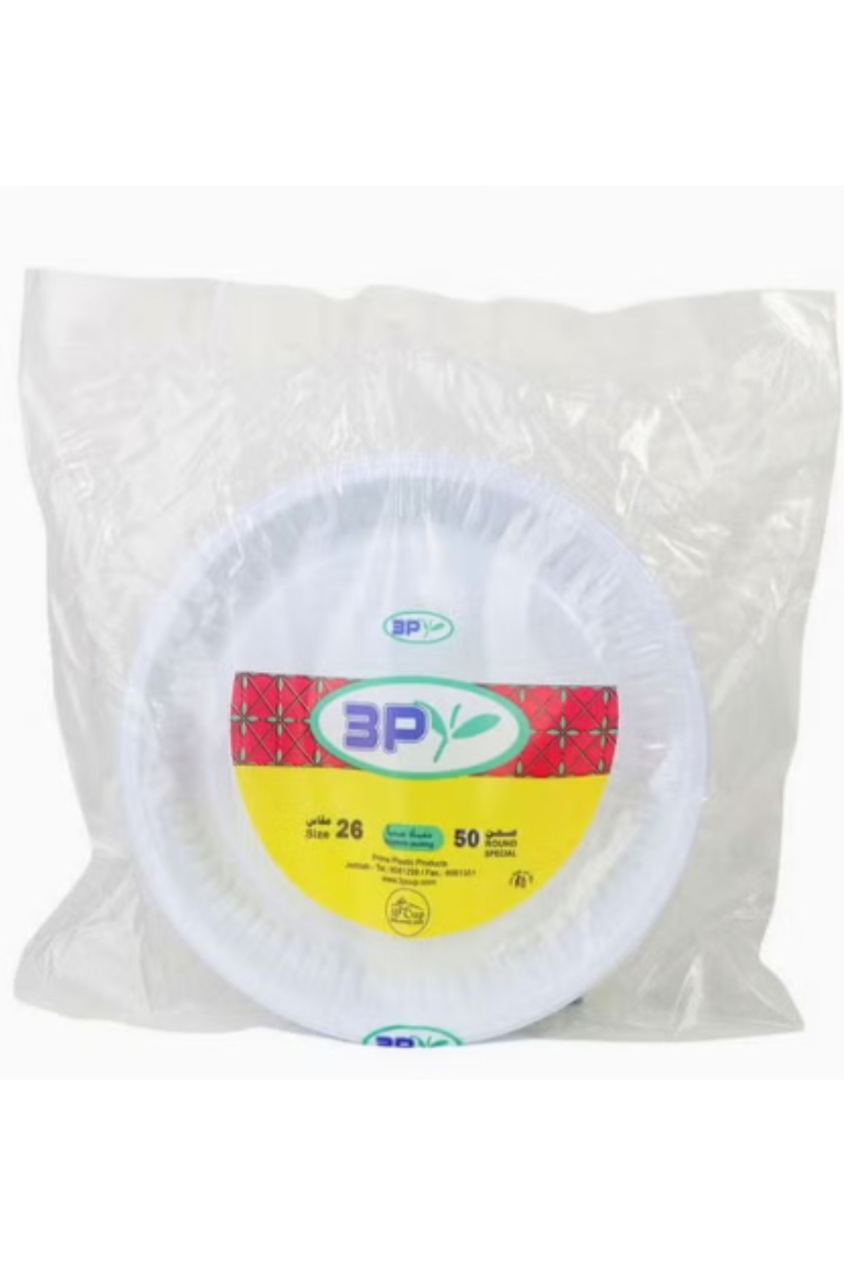 3p ربطة - صحون بلاستيك دائري ابيض 50 صحن مقاس 26
